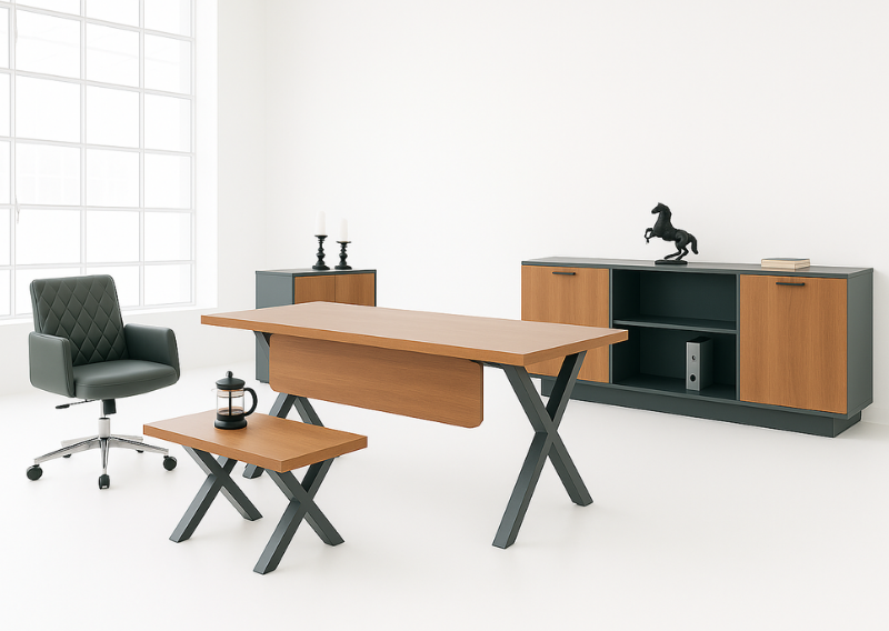 Metal ayaklı yönetici makam masası